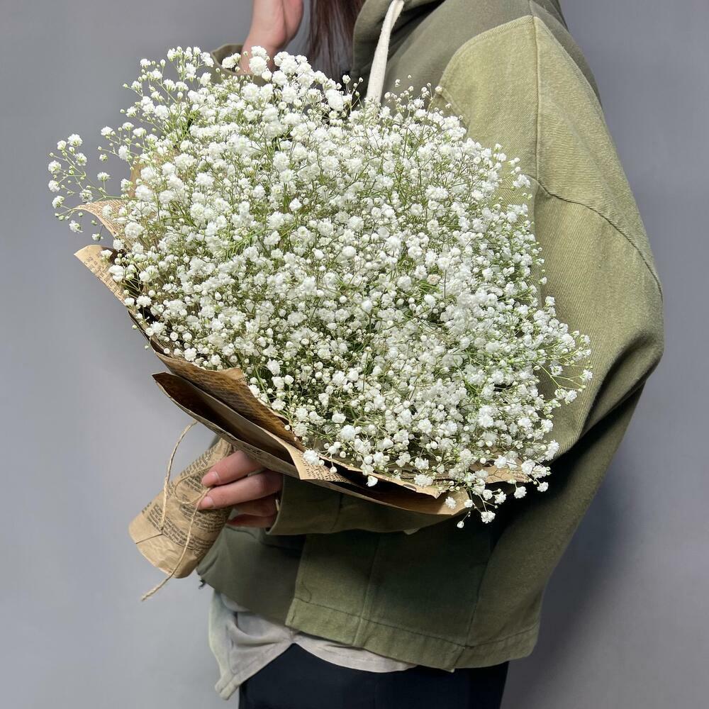 The gypsophila is a spriggy plant with a number of small, odourless, snow-white inflorescences. It goes well with most flowers, making it popular with florists as a bouquet decoration. Delicate and airy, gypsophilas will give any flower arrangement a festive and lush look.