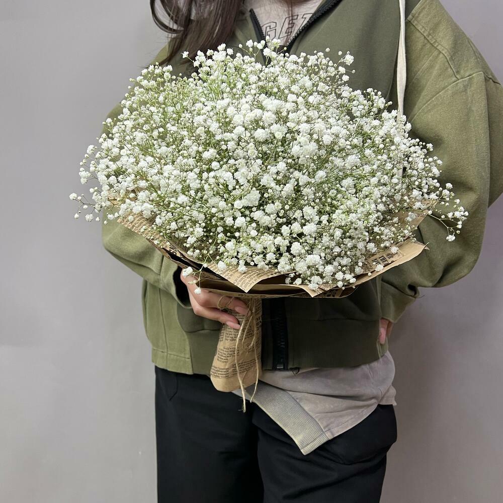 After drying, the gypsophila turns into a dried flower, without losing its shape or colour.