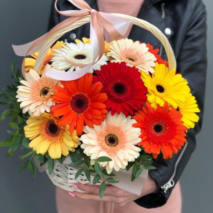 Корзина из гербер и зелени !