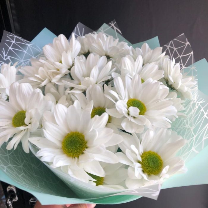 Упаковка дизайнерская – 2 шт.хризантема кустовая чик белая – 5 шт.