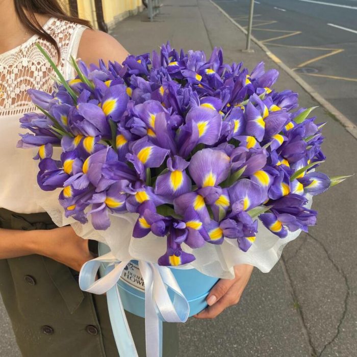 Букет из 51 ириса в дизайнерской коробке “Блэквуд”