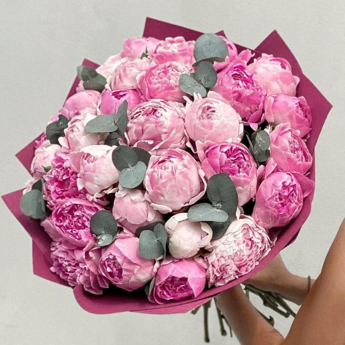 Пион Сара Бернар – 31 шт.эвкалипт синерея – 2 шт.