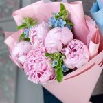 Один из самых красивых и нежных сортов пионов – Сара Бернар с удивительным пышным махровым раскрытием бутона и тонким ароматом. Мы добавили к пионам небесно голубую твидию, которая так похожа на нежные незабудки.Милый и очень трогательный букет придётся по вкусу Вашей любимой!
