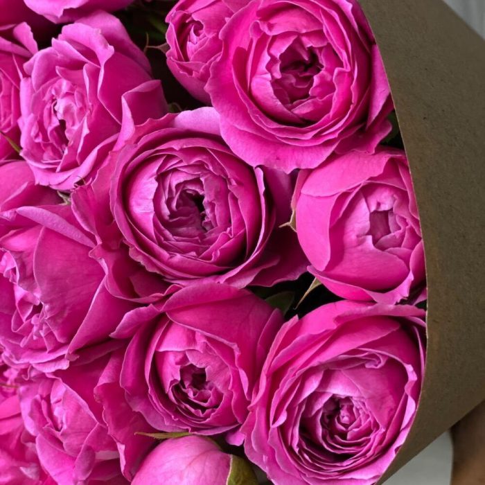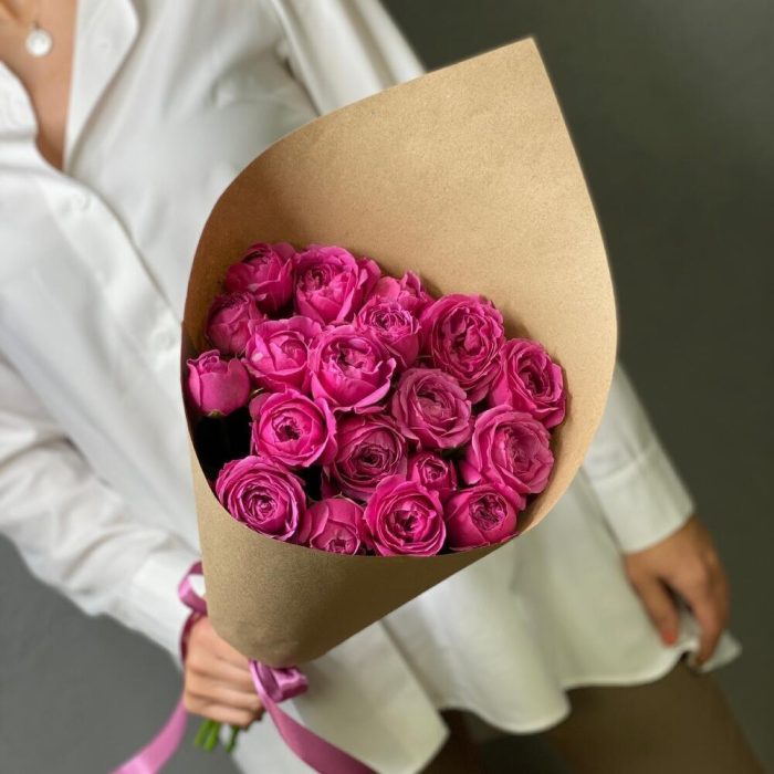 7 пионовидных роз в крафт упаковке