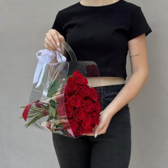 Букет из роз в сумке – изысканная композиция в удобной и стильной упаковке.
