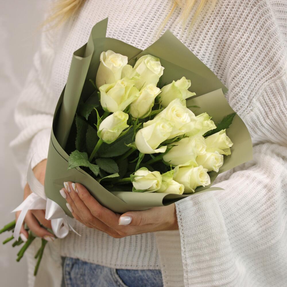 Букет из 15 белых роз 35-40 см (Кения) в стильной упаковке