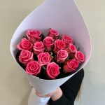 Букет из 15 розовых роз в упаковке