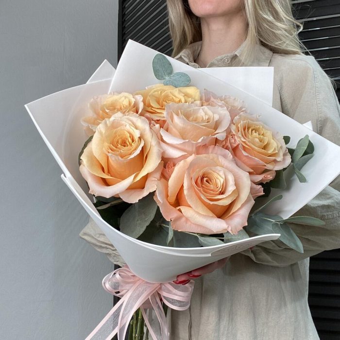Эвкалипт – 4 шт.Упаковка дизайнерская – 1 шт.Роза шиммер – 7 шт.