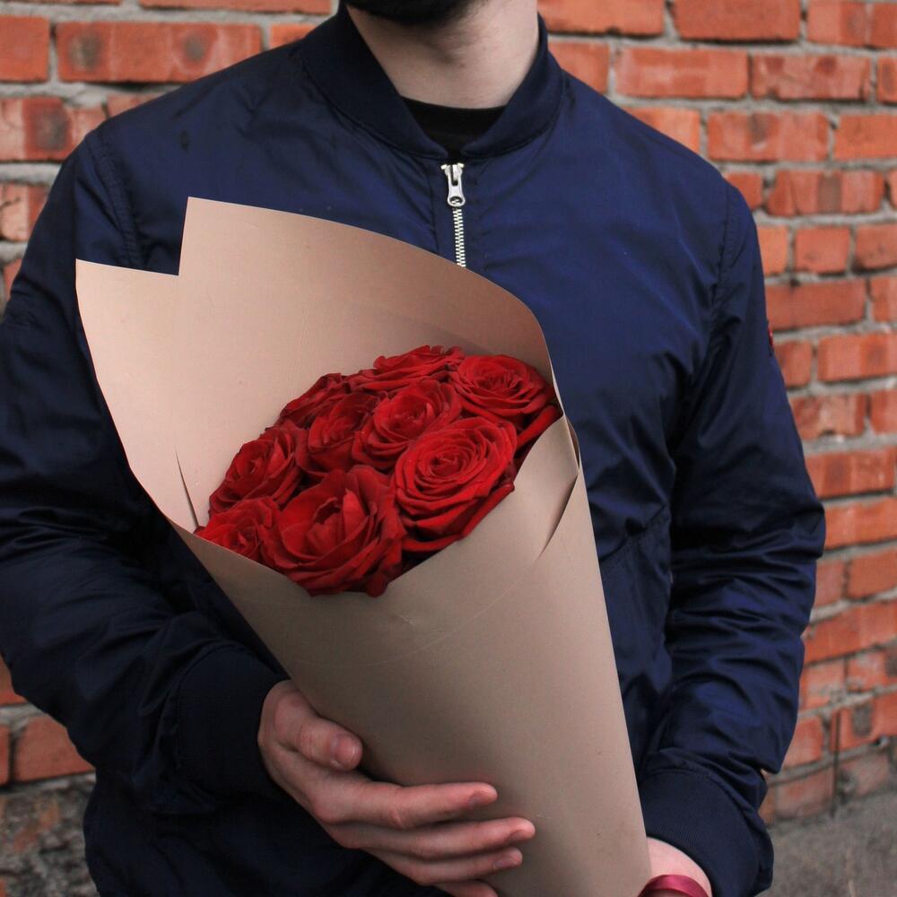 Букет из 9 красных роз в стильной упаковке