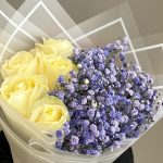 Букет из фиолетовых гипсофил и белых роз