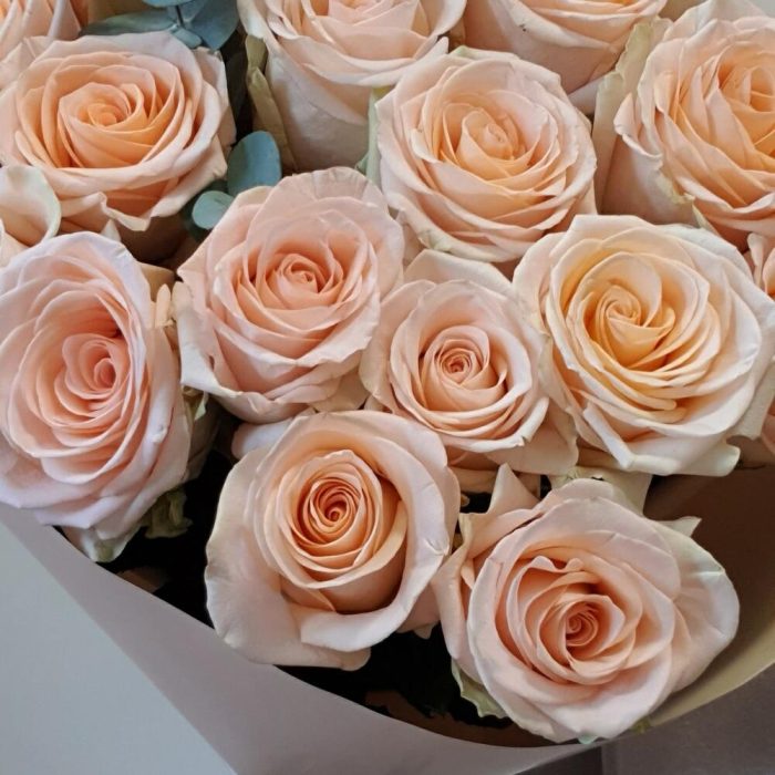 Эвкалипт – 1 шт.Упаковка – 2 шт.Лента атласная – 1 шт.Роза тиффани – 17 шт.