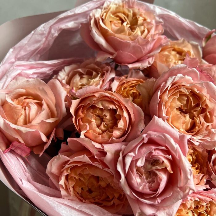 кустовая пионовидная роза julieta – 5 шт.декоративная упаковка – 1 шт.Атласная лента – 1 шт.