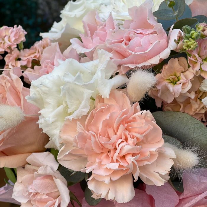 Цветочная композиция с нежными лизиантусами “Леди Роуз”