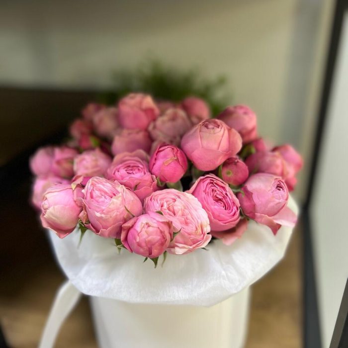 Пионовидная роза кустовая в шляпной коробке ( шляпная коробка может отличаться по цвету – белая, розовая, голубая, сиреневая).Необычные и такие завораживающие пионовидные розы в шляпной коробке! Такая композиция не только очаровательный подарок, который останется в сердце у каждой обладательнице, но и удобный ведь его можно сразу же куда-нибудь поставить.Silvia pink – шикарная кустовая пионовидная роза, по приятной и вкусной цене – нет аналогов этому предложению и не будет. И нет аналогов этому сорту. Эксклюзивная Роза премиум класса.Кустовая пионовидная Роза , сорт Silvia Pink, цвет : розовый.Высота : 40-50 см, лёгкий аромат.Кол-во цветков на стебле: 3-5 шт.Устойчивость к жаре : низкаяВесь цветок свежий, проходит контроль качества.