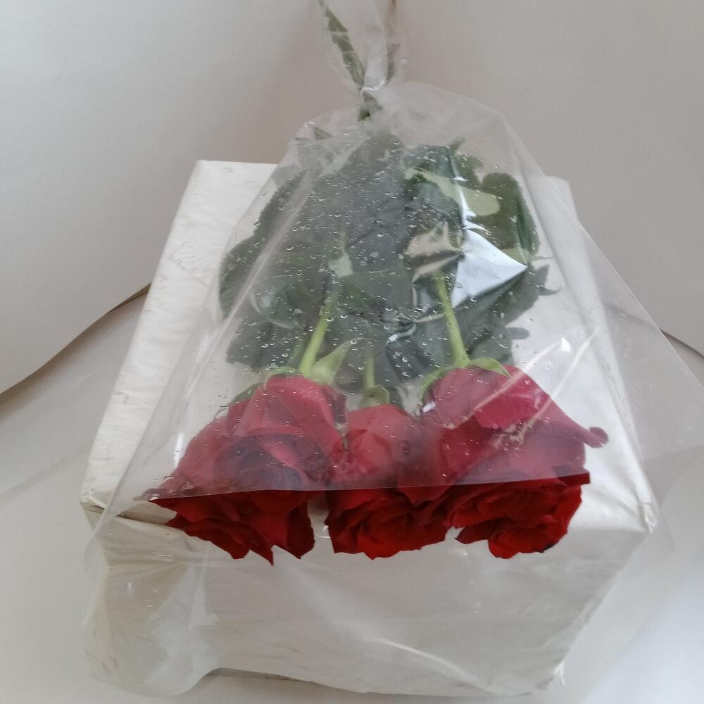 Роза красная 60 см – 5 шт.Прозрачная пленка – 1 шт.