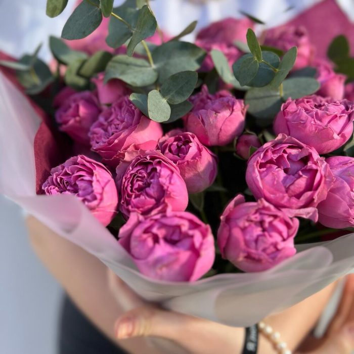 Эвкалипт – 2 шт.Лента атласная – 1 шт.Тишью – 2 шт.Пленка матовая – 1 шт.роза мисти бабл – 7 шт.
