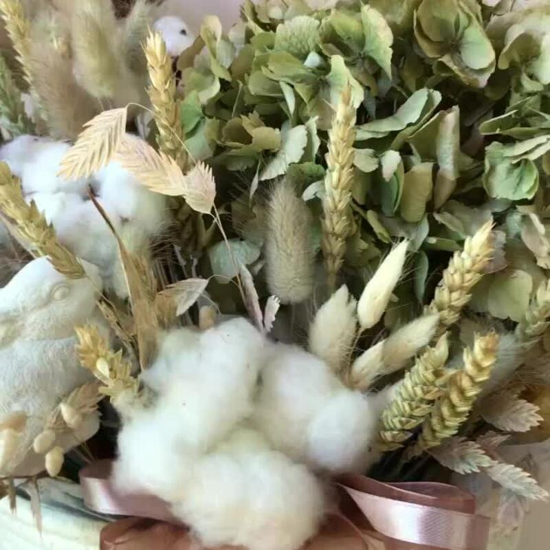 Гортензия – 1 шт.Хлопок натуральный – 7 шт.Физалис – 1 шт.Лагурус – 25 шт.Банксия – 1 шт.Пшеница – 20 шт.