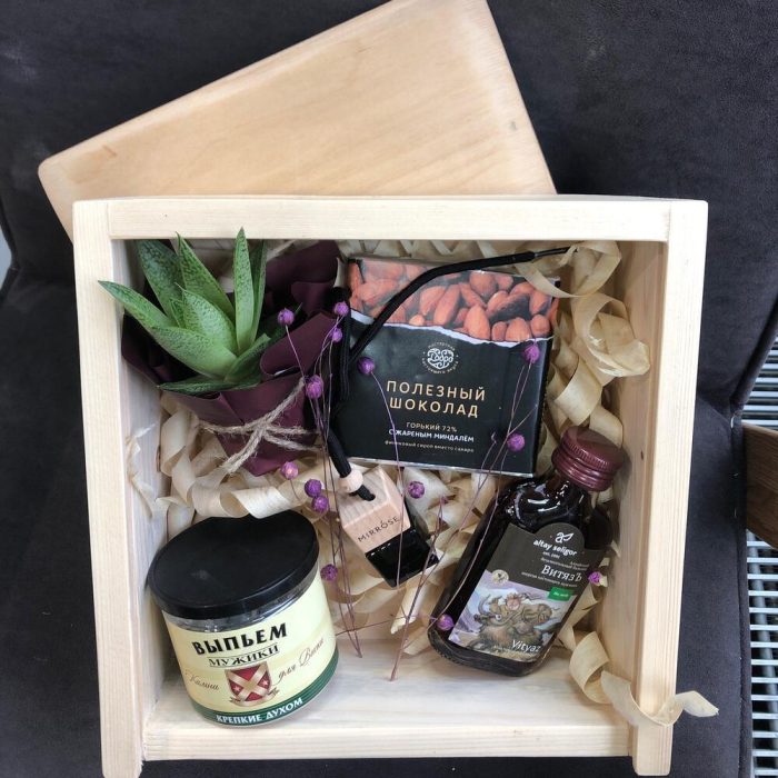 алтайский безалкогольный бальзам – 1 шт.полезный шоколад – 1 шт.камни для охлаждения напитков – 1 шт.ароматизатор парфюм для авто – 1 шт.растение суккулент – 1 шт.коробка подарочная деревянная с крышкой – 1 шт.Сухоцвет – 1 шт.